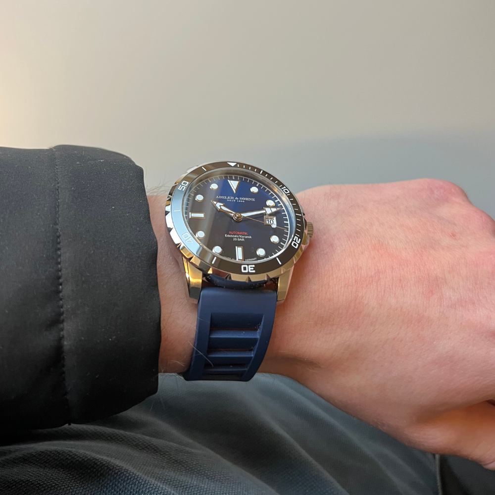Vi tilbyr et utvalg reimer til våre diver-klokker, slik at du enkelt kan tilpasse uttrykket. Reimen kan byttes raskt og enkelt av deg selv, helt uten bruk av verktøy. En praktisk løsning for både hverdag og ulike anledninger.